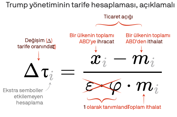 • Formülün basitçe ABD’nin her ülkeyle olan ticaret açığı olduğu ve ABD’nin o ülkeden ithal ettiği malların değerine bölündüğü ortaya çıktı.