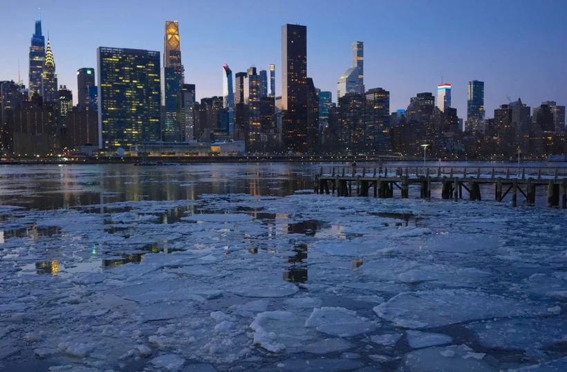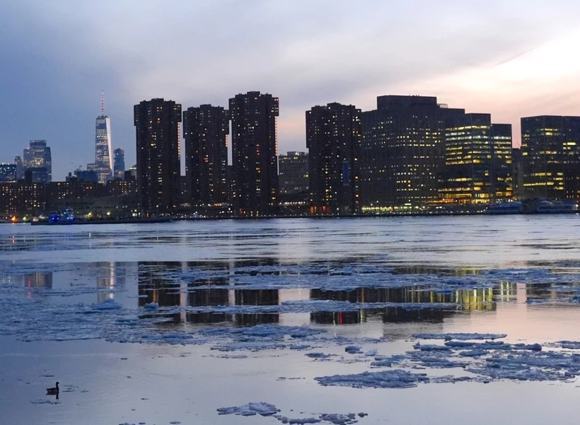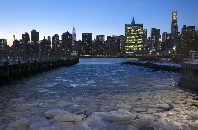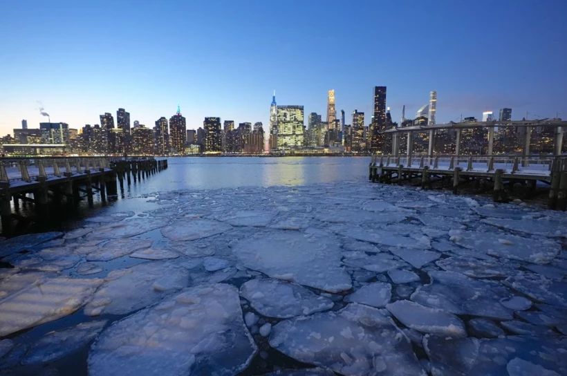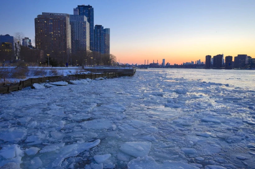 ABD’nin New York eyaletinde dondurucu soğuklar etkili olmaya devam ediyor. Geçen hafta kar fırtınasıyla başlayan dondurucu soğuklar nedeniyle New York’un iki yakasındaki nehirler buz tuttu. Caddelerde metrelerce yüksekliğe ulaşan kar birikintileri oluştu.