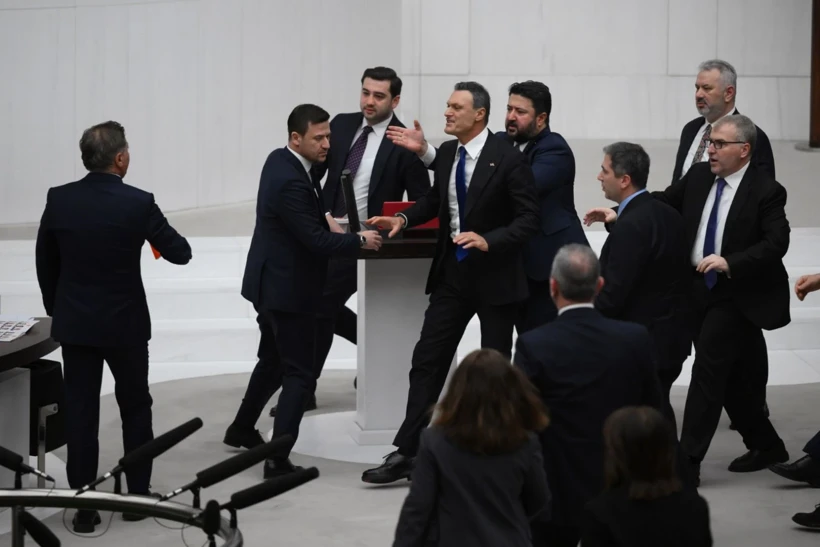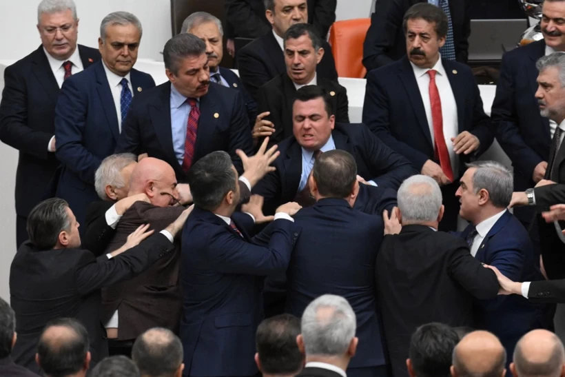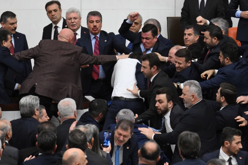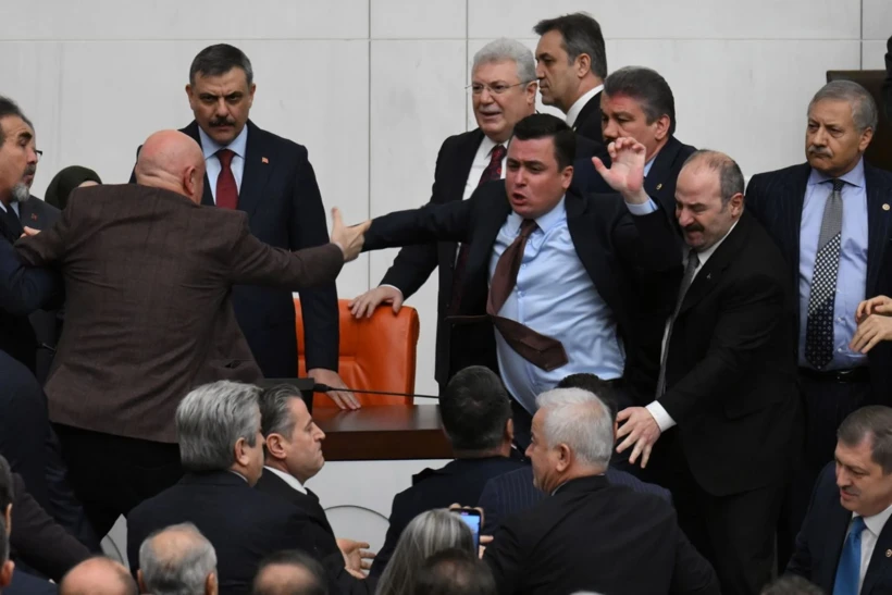 Yeni Adalet Bakanı Akın Gürlek ile yeni İçişleri Bakanı Mustafa Çiftçi’nin Meclis’teki yemini öncesi Genel Kurul boks ringine dönüştü. Muhalefetin kürsü işgali sonrası AKP ve CHP’liler arasında yumruklu kavga çıktı. Osman Gökçek’in CHP’li Mahmut Tanal’a yumruk attığı, Tanal’ın burnunun kanadığı görüldü. AKP’li isim de muhalefet vekillerince darp edildi. O anlar NEFES foto muhabiri Selahattin Sönmez’in objektifine yansıdı.