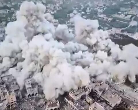 İsrail, Lübnan’ın güneyindeki bir şehirde bulunan mahallenin tümünü havaya uçurdu.