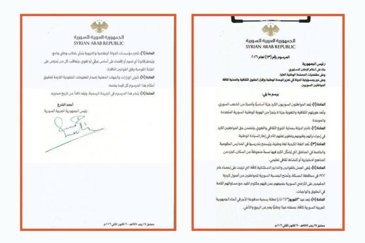 Suriye Geçici Cumhurbaşkanı Ahmed Şara, imzaladığı kararnameyle Kürtlere ilişkin bir dizi önemli düzenlemeyi yürürlüğe koydu. Kararnameye göre Kürtçe ulusal dil olarak kabul edilirken, Newroz